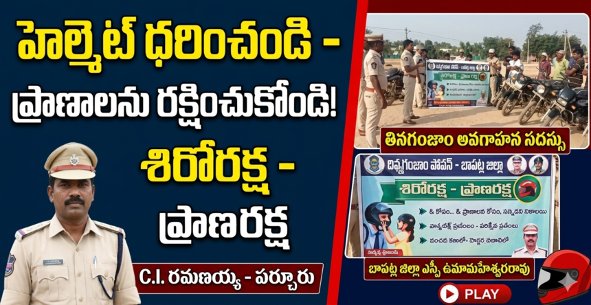 చినగంజాం (పర్చూరు నియోజకవర్గం):“శిరోరక్ష – ప్రాణరక్ష” అనే నినాదంతో ప్రతి ద్విచక్ర వాహనదారుడు తప్పనిసరిగా హెల్మెట్ ధరించాలని పర్చూరు సి.ఐ. రమణయ్య పిలుపునిచ్చారు. గురువారం ఉదయం బాపట్ల జిల్లా చినగంజాం మండలం, రామకోటేశ్వర మహాలక్ష్మిమ్మ కాలనీలో వాహనదారులకు నిర్వహించిన అవగాహన సదస్సులో ఆయన ముఖ్య అతిథిగా ప్రసంగించారు.