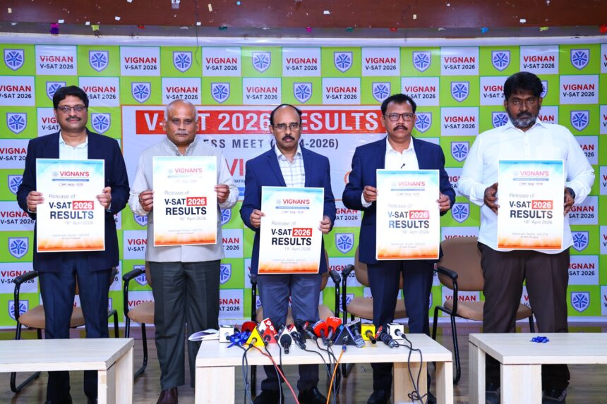 గుంటూరు, ఏప్రిల్ 18 (ప్రతినిధి):Vignan University నిర్వహించిన వీశాట్–2026 ఫేజ్–1 (విజ్ఞాన్ స్కాలాస్టిక్ ఆప్టిట్యూడ్ టెస్ట్) ప్రవేశ పరీక్ష ఫలితాలను ఇంచార్జి వైస్ ఛాన్సలర్ ప్రొఫెసర్ కె.వి. కృష్ణకిషోర్ శనివారం విడుదల చేశారు. ఈ పరీక్షకు దేశవ్యాప్తంగా అనూహ్య స్పందన లభించగా, సుమారు 61 వేల మంది విద్యార్థులు హాజరయ్యారు. వీరిలో 42 వేల మంది ప్రవేశాలకు అర్హత సాధించినట్లు తెలిపారు. https://vignan.ac.in/vsatresult/