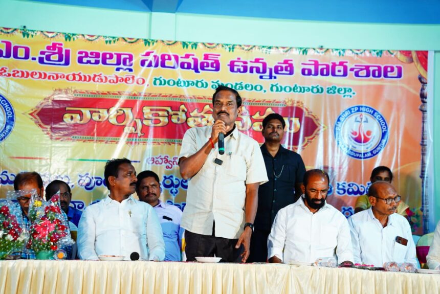 గుంటూరు, ఏప్రిల్ 18 (ప్రతినిధి):గుంటూరు రూరల్ మండలం ఓబుల్ నాయుడుపాలెం గ్రామంలోని పిఎం శ్రీ జిల్లా పరిషత్ ఉన్నత పాఠశాలలో వార్షికోత్సవ వేడుకలు ఘనంగా నిర్వహించారు. ఈ కార్యక్రమానికి ముఖ్య అతిథిగా Burla Rama Anjaneyulu హాజరయ్యారు. ఈ సందర్భంగా కీ.శే. చింతా సాంబయ్య మరియు వెంకటసుబ్బులు గారి జ్ఞాపకార్థంగా నిర్మించిన కళావేదికను ఆయన ప్రారంభించి, జ్యోతి ప్రజ్వలన చేశారు.