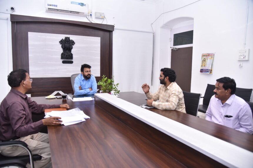 కలెక్టర్ సి.యం.సాయి కాంత్ వర్మ మంగళవారం తెనాలి తాహసిల్దార్ కార్యాలయాన్ని సందర్శించారు. తాహసిల్దార్ గోపాలకృష్ణ కార్యాలయ పునరుద్ధరణ పనులను వివరించారు. కార్యాలయం చక్కగా తీర్చిదిద్దినందుకు తాహసిల్దార్ ను అభినందించారు. మంచి కార్యాలయం ఉండటం వలన విధుల నిర్వహణ ఆహ్లాదకర వాతావరణంలో చేయవచ్చని అన్నారు. అనంతరం తెనాలి మున్సిపల్ కార్యాలయాన్ని సందర్శించారు. తెనాలి ప్రాంతంలో జరిగే గృహ నిర్మాణ పనులు ఇతర అభివృద్ధి పనులను గురించి తెనాలి మున్సిపల్ కమిషనర్ జె. రామ్ అప్పలనాయుడు, గృహ నిర్మాణ సంస్థ ఇన్చార్జ్ ప్రాజెక్టు డైరెక్టర్ తో చర్చించారు. గృహ నిర్మాణాలు వేగవంతంగా చేయుటకు అవసరమైన చర్యలు చేపట్టాలని ఆదేశించారు. పేదలకు సొంత ఇంటి కల అపురూపమని దాన్ని నిజం చేయాలని అన్నారు. కాంట్రాక్టర్లకు అప్పగించిన పనులపై శనివారం ఒక సమావేశాన్ని నిర్వహించాలని సూచించారు.