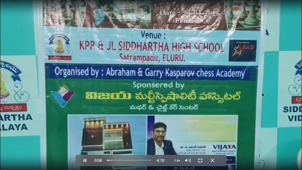 Chess Tournament విద్యార్థుల్లో దాగి ఉన్న అద్భుతమైన ప్రతిభను వెలికితీసేందుకు ఒక గొప్ప వేదికగా నిలుస్తుంది. ఏలూరు నగరంలోని సత్రంపాడులో ఉన్న సిద్ధార్థ విద్యాలయ వేదికగా ఈరోజు 4వ రాష్ట్ర స్థాయి రాపిడ్ చెస్ టోర్నమెంట్ అత్యంత ఉత్సాహభరితంగా నిర్వహించబడింది. ఈ కార్యక్రమం విద్యార్థుల మేధో వికాసానికి ఎంతో తోడ్పడుతుందని నిర్వాహకులు అభిప్రాయపడ్డారు