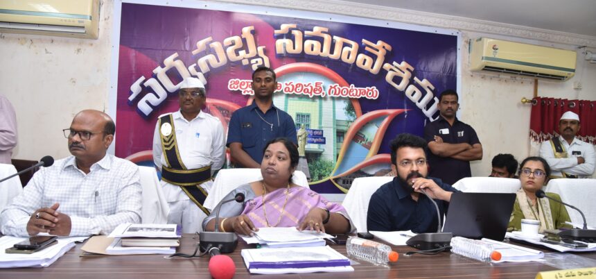 జలధార – జల హారతి కార్యక్రమంలో ప్రజా ప్రతినిధులు అందరూ భాగస్వామ్యం కావాలని జిల్లా పరిషత్ చైర్ పర్సన్ కత్తెర హెన్రీ క్రిస్టినా పిలుపునిచ్చారు. ఉమ్మడి గుంటూరు జిల్లా పరిషత్ సర్వసభ్య సమావేశం జిల్లా పరిషత్ సమావేశ మందిరంలో బుధవారం చైర్ పర్సన్ అధ్యక్షతన జరిగింది. ఈ సమావేశానికి జిల్లా కలెక్టర్ సి.యం.సాయి కాంత్ వర్మ హాజరయ్యారు. ఈ సందర్భంగా చైర్పర్సన్ మాట్లాడుతూ ప్రతి నీటి బొట్టును ఒడిసిపట్టే విధంగా రాష్ట్ర ప్రభుత్వం జల ధార – జల హారతి వంద రోజుల కార్యక్రమానికి శ్రీకారం చుట్టిందన్నారు. ప్రతి చెరువును నిండు కుండలా చేయుటకు ప్రతి ఒక్కరూ సహకరించాలని కోరారు. ప్రతి చెరువులో పూడికలు తీసి నీటి నిలువ సామర్థ్యాన్ని పెంచాలని అన్నారు. చెరువుల్లోకి నీటి పారుదల ఉన్న కాలువల్లో ఎటువంటి పూడికలు లేకుండా నీటిపారుదల నిరాటంకంగా జరుగుటకు దోహదం చేయాలని సూచించారు. ప్రజా ప్రతినిధులు మాట్లాడుతూ వేసవిలో నీటి ఎద్దడి లేకుండా చర్యలు చేపట్టాలని అన్నారు. వైద్య సేవలు మెరుగుపరచాలని, స్థానికంగానే మంచి వైద్య సౌకర్యాలు అందించాలని చెప్పారు. పల్నాడు జిల్లాలో అనుమతులు లేకుండా చేపల చెరువులను నిర్వహిస్తున్నారని, వ్యర్ధాలను కృష్ణ జలాల్లో విడిచిపెడుతున్నారని వాటిపై పర్యవేక్షణ చేయాల్సిన అవసరం ఉందని సూచించారు. సి.ఆర్.డి.ఏ ప్రాంతంలో ఉన్న భూముల క్రయవిక్రయాలకు ఎటువంటి సమస్యలు లేకుండా చర్యలు తీసుకోవాలని కోరారు. నల్లమడవాగు, ఇతర జల వనరుల కాలువలను గండ్లను పూడ్చుటకు చర్యలు చేపట్టాలని కోరారు. మధ్యాహ్న భోజన పథకం కొరకు నిర్మించిన కిచెన్ షెడ్ల పిల్లల పేమెంటులో అందాల్సి ఉందని వాటిపై దృష్టి సారించాల్సిన అవసరం ఉందని తెలిపారు. జలవనరుల శాఖ పర్యవేక్షక ఇంజనీర్ వెంకట రత్నం మాట్లాడుతూ జిల్లాలో 12 వందల చెరువులు ఉన్నాయని, ప్రతీ చెరువును గరిష్ట సామర్థ్యం మేరకు నీటితో నింపుటకు చర్యలు చేపడుతున్నామని అన్నారు. భూగర్భ జలాల 3 నుండి 6 మీటర్ల మధ్య నీటి మట్టం పెరుగుదల లక్ష్యంగా చేపట్టడం జరుగుతుందని అన్నారు. 15 మీటర్ల కంటే లోతైన ప్రాంతాలు ప్రాధాన్యతగా గుర్తించాలని, కనీసం ఒక మీటరు మెరుగుదల సాధించాలని తెలిపారు. శాటిలైట్ చిత్రాల ద్వారా శాస్త్రీయంగా చెరువుల మ్యాపింగ్ చేయడం, హైడ్రోలాజికల్ విశ్లేషణ ద్వారా నీటి ఎద్దడి ఉన్న ప్రాంతాలను గుర్తించడం, ఉపాధి హామీ పథకం నిధులతో పనుల అమలు, నిరంతర పర్యవేక్షణ, భూగర్భ జల మట్టాల విశ్లేషణ చేయడం జరుగుతుందన్నారు. గుంటూరు వ్యవసాయ శాఖ జాయింట్ డైరెక్టర్ ఎం.పద్మావతి వ్యవసాయ శాఖ చేపడుతున్న వివరాలను తెలిపారు ఖరీఫ్, రబీ సీజన్లలో లక్ష్యానికి మించి పంటలు వేయడం జరిగిందని చెప్పారు. ఎరువుల కొరత లేదని తెలిపారు. పల్నాడు, బాపట్ల జిల్లా వ్యవసాయ అధికార