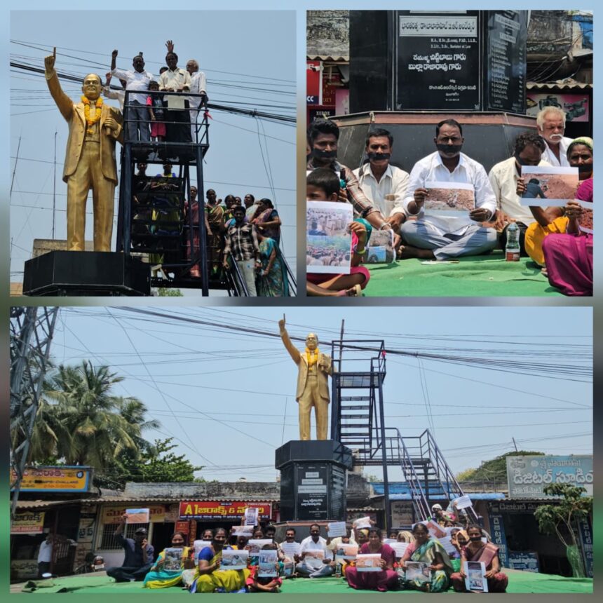 మంగళగిరి అంబేద్కర్ సెంటర్ వద్ద మార్కాపురం జిల్లా కనిగిరి పట్టణానికి చెందిన బోయవాల్మీకులు నిరసన. కనిగిరి మున్సిపాలిటీలోని ఐదు ఎకరాల స్మశాన స్థలం కబ్జాకు గురి కాకుండా ముఖ్యమంత్రి ,ఉప ముఖ్యమంత్రి, మంత్రి లోకేష్ వెంటనే కాపాడాలి అంటూ నిరసన. అంబేద్కర్ విగ్రహం వద్ద నల్ల రిబ్బన్లు నోటికి కట్టుకొని దీక్షటిడిపి నాయకులతో కలిసి పోలిసులు బోయ వాల్మీకులకు అన్యాయం చేస్తున్నారు. మా స్మశానం కాపాడండి అంటూ అడ్డుకున్నందుకు 45 మంది పైన కేసులు పెట్టారు. బోయవాల్మీకుల స్మశానం కాపాడుకోవాలని ప్రయత్నం చేసినందుకు చిన్న పిల్లలను కూడా చూడకుండా గొంతు మీద కాళ్ళతో తొక్కారు. ఈ రాష్ట్రంలో బోయవాల్మీకులు 50 లక్షల మంది పైగా ఉన్నారు. ఈ కూటమి ప్రభుత్వం చిన్న స్థాయి కులాలను పట్టించుకోవడం లేదు అగ్రకులాలకు ప్రాధాన్యత ఇస్తుంది. ఈ విషయం పైన ముఖ్యమంత్రి నారా చంద్రబాబు నాయుడు, ఉప ముఖ్యమంత్రి పవన్ కళ్యాణ్, మంత్రి నారా లోకేష్ వెంటనే స్పందించకపోతే రాష్ట్ర స్థాయిలో ఈ ఉద్యమాన్ని లేవదీస్తాం.