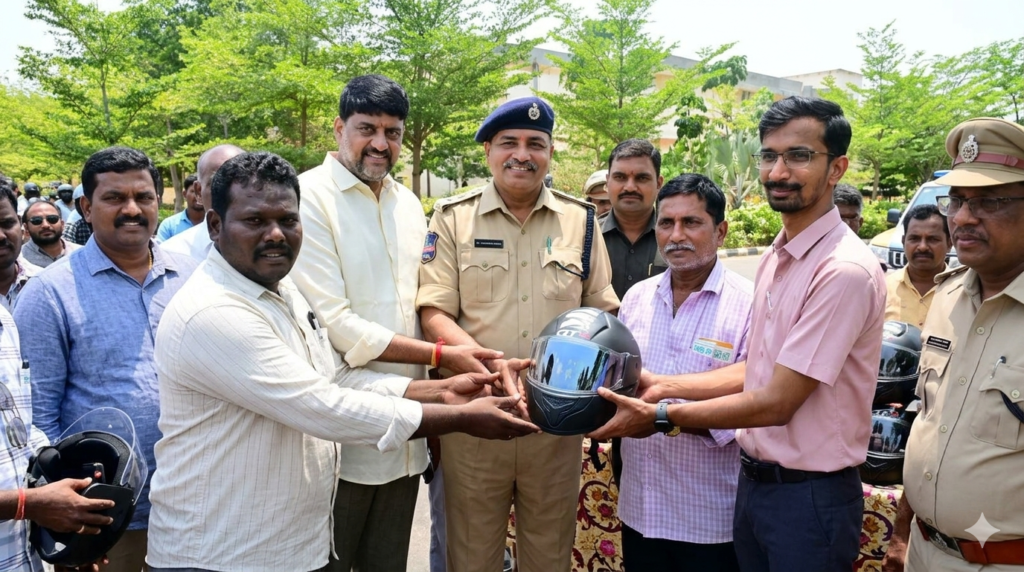 ఈ సందర్భంగా ఎమ్మెల్యే మాట్లాడుతూ, ఎండా–వాన తేడా లేకుండా ప్రజా సమస్యలను వెలుగులోకి తెచ్చే జర్నలిస్టులు తమ భద్రతను విస్మరించకూడదని సూచించారు. వార్తల సేకరణలో వేగంగా ప్రయాణించే సందర్భాల్లో హెల్మెట్ ధరించడం అత్యవసరమని పేర్కొన్నారు.ఇటీవల రోడ్డు ప్రమాదంలో విశాలాంధ్ర విలేకరి కాగిత ప్రశాంత్ మృతి పట్ల ఎమ్మెల్యే దిగ్భ్రాంతి వ్యక్తం చేశారు. హెల్మెట్ ధరించకపోవడం వల్లే ఒక యువ జర్నలిస్టును కోల్పోయామని, ఇలాంటి ఘటనలు మళ్లీ జరగకుండా జాగ్రత్తలు తీసుకోవాలని ఆయన పేర్కొన్నారు.https://youtu.be/hB3Ki-70YlM?si=F37bVfzziisHKWm7