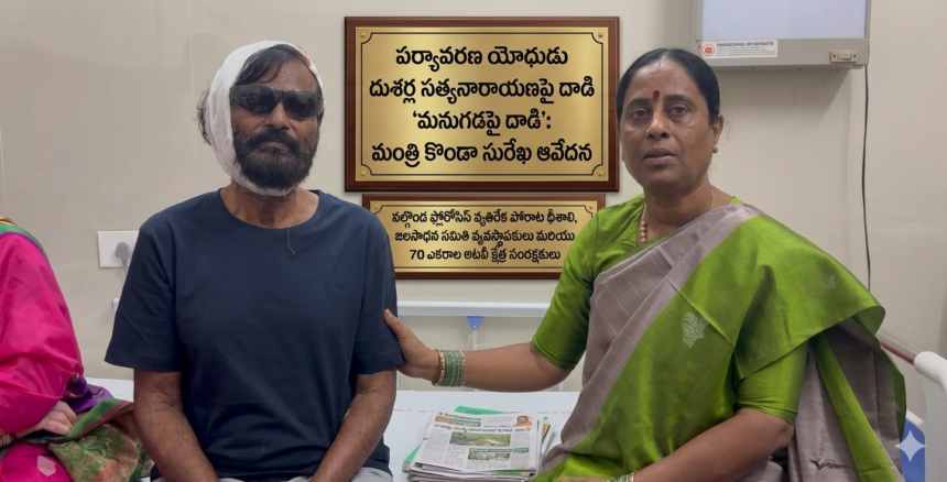 హైదరాబాద్: ప్రకృతి ప్రేమికుడు, నీటి హక్కుల పోరాట యోధుడు దుశర్ల సత్యనారాయణపై జరిగిన దాడి పట్ల రాష్ట్ర అటవీ, పర్యావరణ శాఖ మంత్రి కొండా సురేఖ తీవ్ర దిగ్భ్రాంతి వ్యక్తం చేశారు. ప్రస్తుతం హైదరాబాద్లోని నిమ్స్ (NIMS) ఆసుపత్రిలో చికిత్స పొందుతున్న సత్యనారాయణ గారిని మంత్రి స్వయంగా పరామర్శించారు. ఆయన ఆరోగ్య పరిస్థితిని వైద్యులను అడిగి తెలుసుకున్న మంత్రి, మెరుగైన వైద్యం అందించాలని ఆదేశించారు.