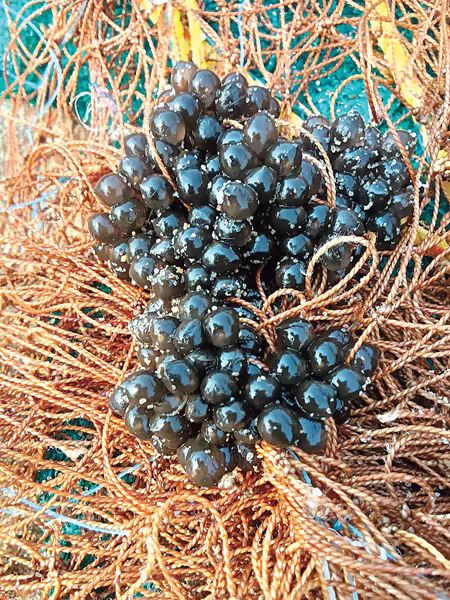 నల్ల ద్రాక్షలా మెరిసే చేప గుడ్లు