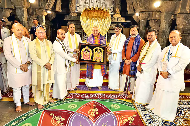ధ్వజస్తంభానికి అత్యంత భక్తిశ్రద్ధలతో నమస్కరించుకున్న తర్వాత, ఉపరాష్ట్రపతి సీపీ రాధాకృష్ణన్ Tirumala Venkateswara Temple గర్భాలయంలోని శ్రీ వేంకటేశ్వర స్వామిని దర్శించుకున్నారు. కొద్దిసేపు స్వామివారి సన్నిధిలో ధ్యానం చేసుకుని, లోక కల్యాణం కోసం ప్రార్థించారు. దర్శనం అనంతరం రంగనాయకుల మండపానికి ఆయన చేరుకున్నారు.
