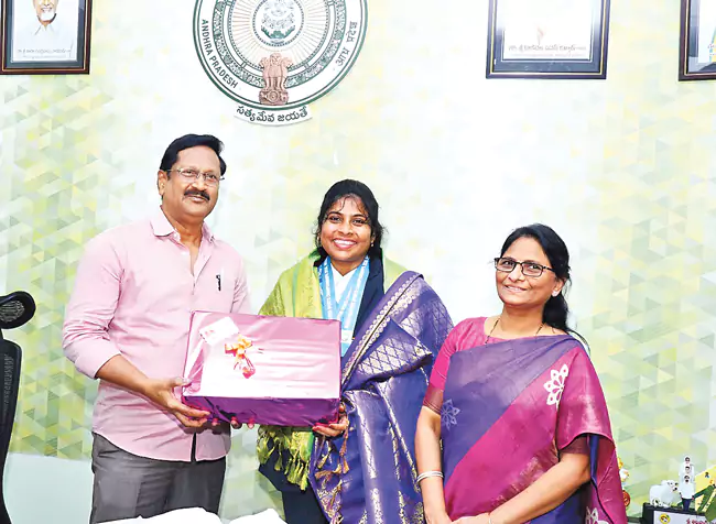 World Masters Sports 2026 పోటీలలో ఆంధ్రప్రదేశ్ రాష్ట్రానికి చెందిన క్రీడాకారిణి కె. రాజేశ్వరి అద్భుతమైన ప్రతిభను కనబరిచారు. పశుసంవర్ధక శాఖలో జూనియర్ వెటర్నరీ అధికారిగా బాధ్యతలు నిర్వహిస్తున్న ఆమె, అంతర్జాతీయ వేదికపై మూడు బంగారు పతకాలను సాధించి రాష్ట్ర ఖ్యాతిని దశదిశలా చాటారు. ఈ అద్భుత విజయం సాధించి స్వదేశానికి తిరిగి వచ్చిన ఆమెను మంగళవారం పశుసంవర్ధక శాఖ ఉన్నతాధికారులు మరియు సహోద్యోగులు ఘనంగా సత్కరించారు.